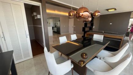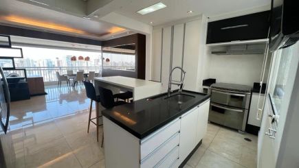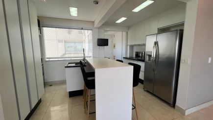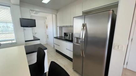 Apartamento com 104 m², 2 dormitórios, sendo 1 suíte com amplo closet. O living é integrado à varanda e à cozinha, proporcionando um ambiente moderno e funcional. O imóvel conta ainda com lavabo, 2 vagas de garagem e depósito privativo.