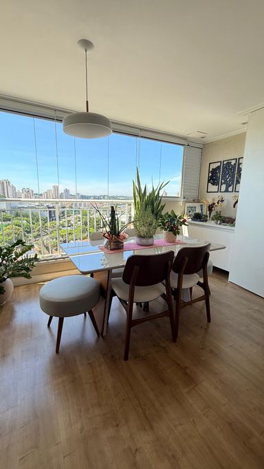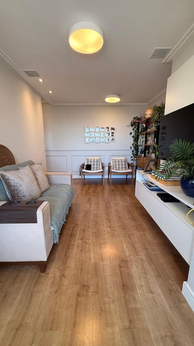 Apartamento impecável disponível para venda e locação, com 61 m² de área útil. O imóvel conta com dois dormitórios com armários planejados, sendo uma suíte, dois banheiros equipados com gabinetes e box em vidro Blindex, sala para dois ambientes com painel de TV, cozinha com móveis planejados e fogão, além de varanda gourmet envidraçada.