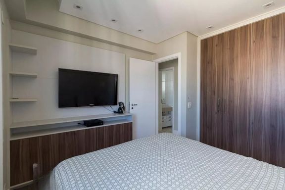 Apartamento mobiliado à venda com 100 m² de área privativa, localizado no bairro Chácara Inglesa, em São Paulo. O imóvel conta com três dormitórios, sendo uma suíte, três banheiros e duas vagas de garagem.