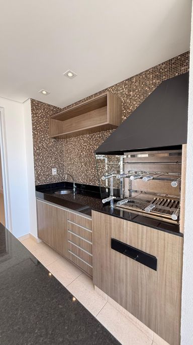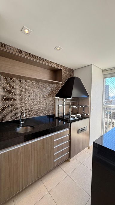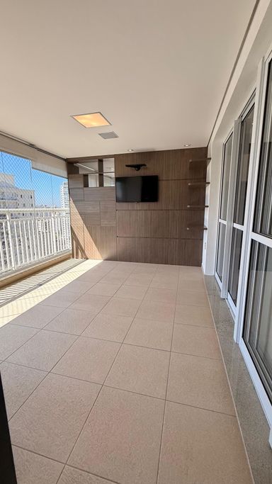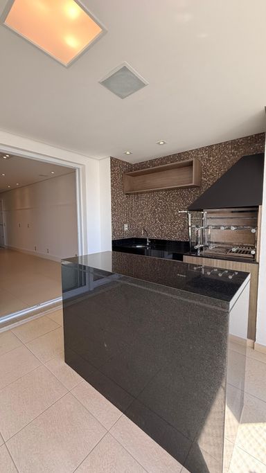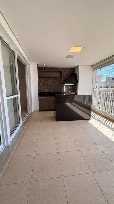O imóvel possui 3 dormitórios, sendo 1 suíte com sacada, além de 4 banheiros no total. A planta é bem distribuída, com sala para dois ambientes integrada à varanda gourmet com churrasqueira, fechamento em vidro, persianas instaladas e som ambiente embutido.