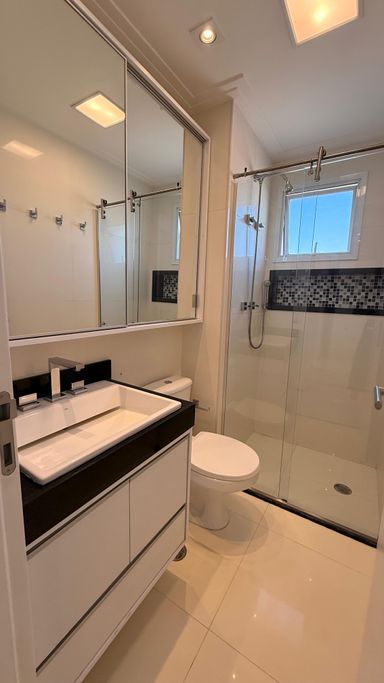 Apartamento localizado em andar alto, de frente, com vista livre, bem iluminado e arejado. Conta com ar-condicionado na sala e em todos os quartos, além de armários planejados em todos os ambientes, proporcionando praticidade e excelente aproveitamento dos espaços.