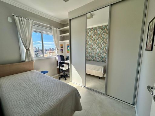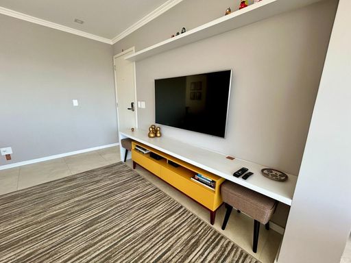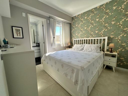 Apartamento em andar alto, com vista livre, face norte e excelente incidência de luz natural, proporcionando ambientes bem iluminados e arejados ao longo do dia. Possui ar-condicionado na sala e dormitórios, além de armários planejados em todos os ambientes.