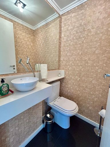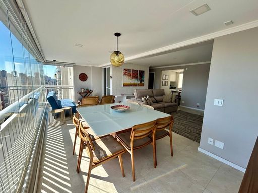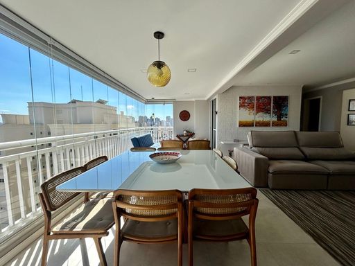 O imóvel conta com 3 dormitórios, sendo 1 suíte, além de lavabo e 4 banheiros no total. Planta bem distribuída, com sala para dois ambientes, integrada à varanda gourmet com churrasqueira e fechamento em vidro.