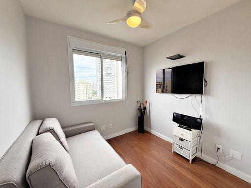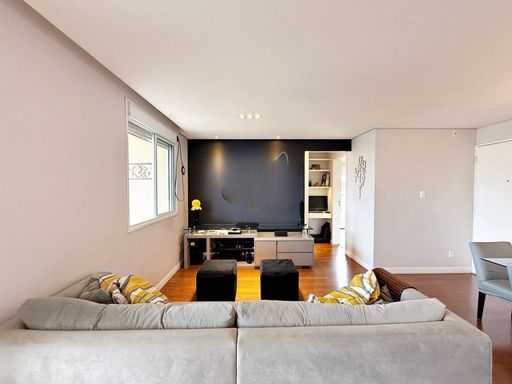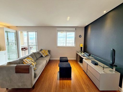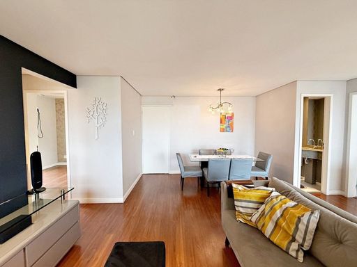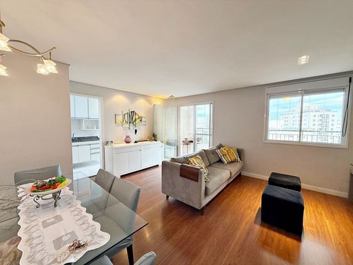 Apartamento em andar alto, ensolarado, com varanda gourmet, duas vagas de garagem e um depósito.