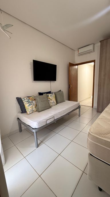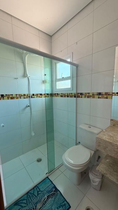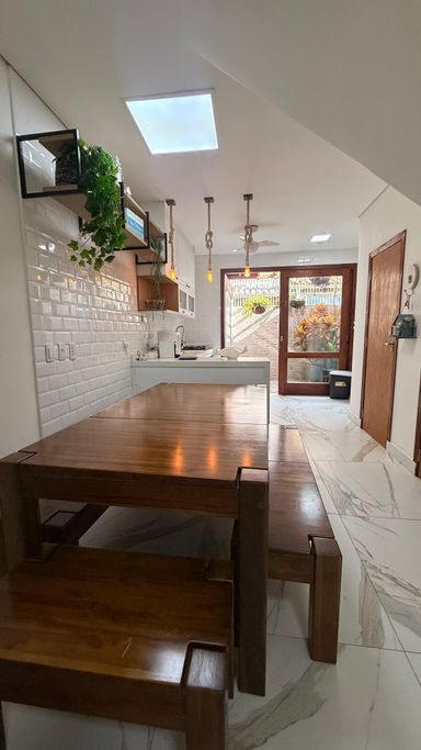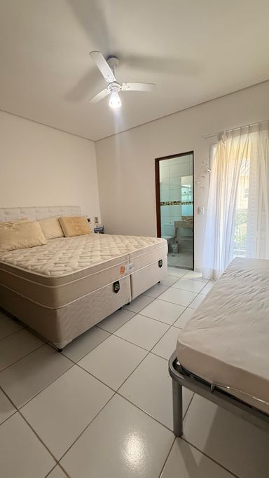 São 3 dormitórios, sendo 1 suíte com varanda privativa, oferecendo um espaço agradável e reservado. A casa conta também com ar-condicionado, garantindo conforto térmico em todas as estações.