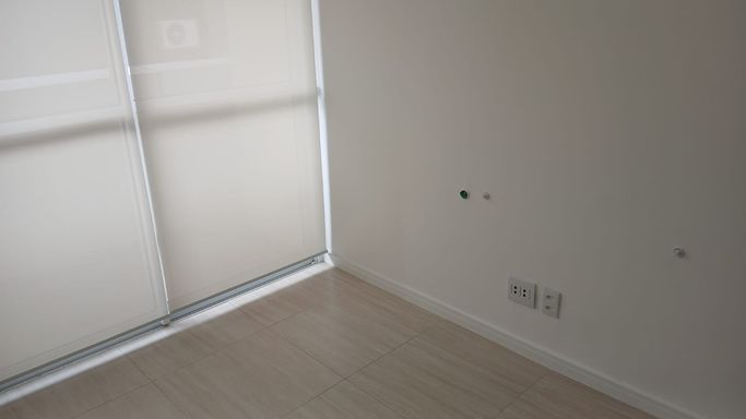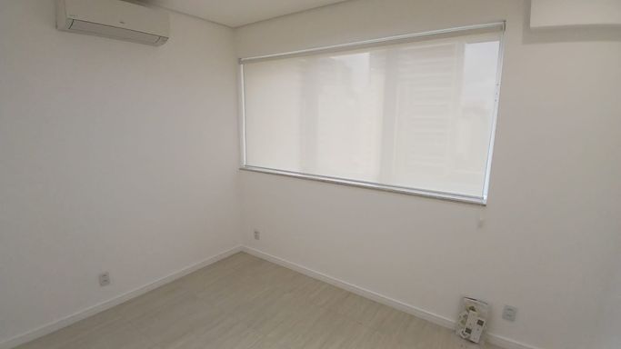 Localizada no oitavo andar, a sala dispõe de duas amplas janelas, garantindo excelente iluminação natural e ventilação, além de ser silenciosa em qualquer período do dia. O condomínio oferece segurança 24 horas e uma vaga de garagem.