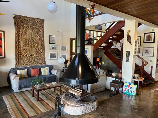 * Ateliê com 200 m², construído em pedra natural, madeira e vidro